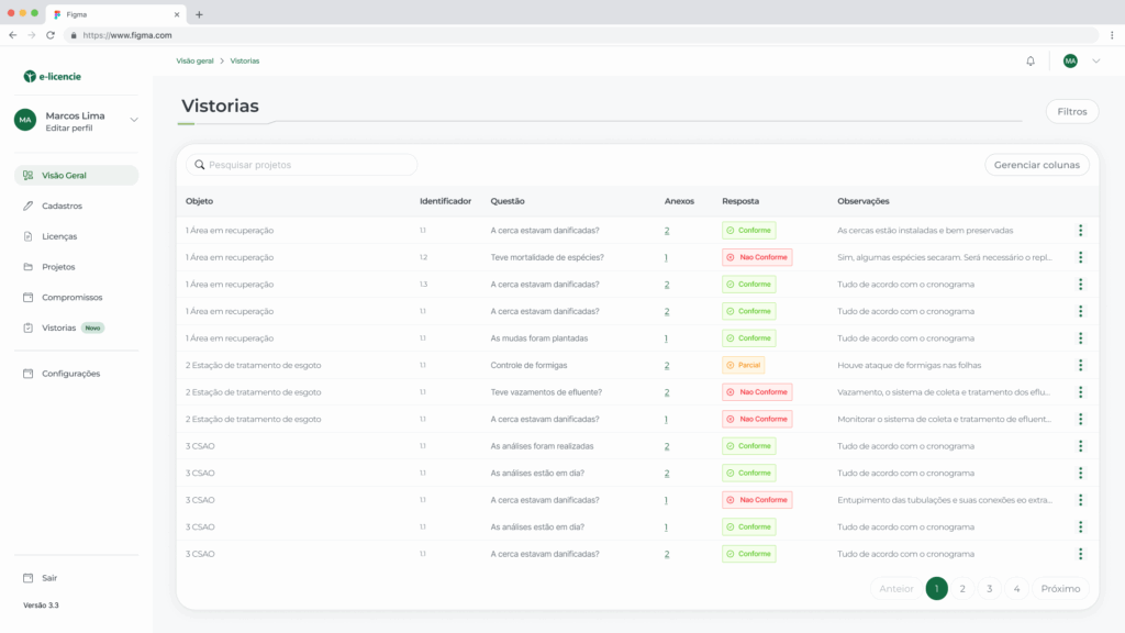 Ideal para atingir a conformidade e tratar as não conformidades por meio do plano de ação. Inclua fotos, coordenadas e detalhamentos. Obtenha relatórios profissionais em minutos.